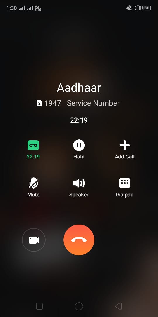 यूआईडीएआयने हाल के दिनों में काफी सारे पर्यायोंको आजमाने की कोशिश की है। इसी के चलते उनका पहले से एक टोल फ्री फोन नंबर 1947 जारी कर रखा है। जिसपर नंबर मिलाना एक मिशन के बराबर है। अगर आप इसे मिलाना शुरू करे तो ,करीब सौ बार कोशिश करनी होगी। इसके बाद भी आपकी कॉल कनेक्ट होने की कोई गारंटी नहीं। बड़ी मुश्किल से फोन लाइन मिली तो समस्य बताने से पहले कट जाती हैं। या फिर आपके मोबाईल की बैटरी दम तोड़ चुकी होती है। आपके लिए मैंने कुछ स्क्रीन शॉट यहाँ जोड़े है ,जिसे देख आप समझ सकते है की कितना समय बीतनेके बाद भी बात नहीं हो पाती है। तो यहासे सहायता की उम्मीद रखना बेमानी है। पर इससे यूआईडीएआय को क्या लेना? गौर करनेवाली बात यह भी है के ,यहाँ बैठे रेप्रेजेंटेटिव के अधिकारों का दायरा बेहद कम है। साथ ही इनके पास कोई ठोस उपाय या ओपिनियन नहीं होता जिसके आधार पर शिकायत करता का समाधान कर सके।